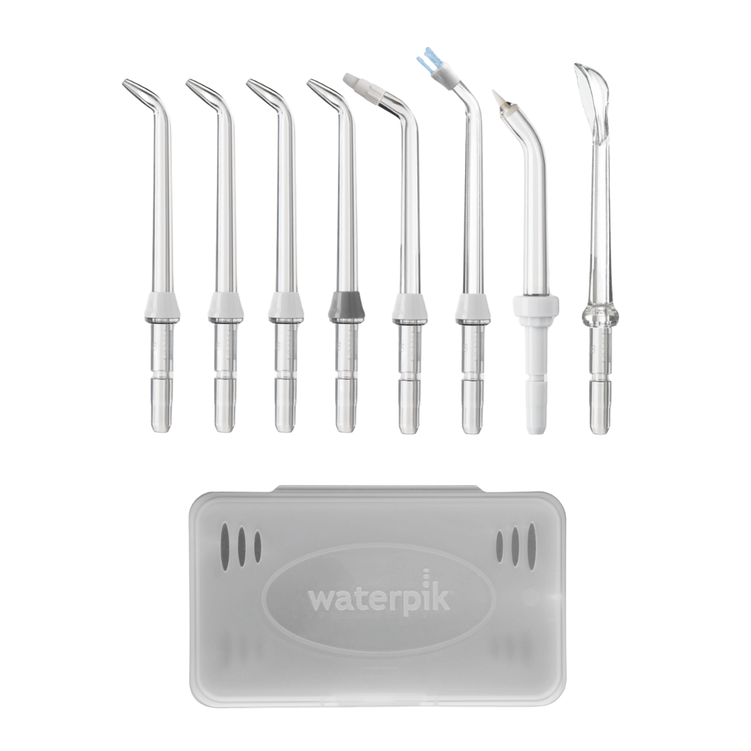 - Soak the Water Flosser tip in a container of 2 parts water, 1 part hydrogen peroxide or white vinegar for 5 minutes.